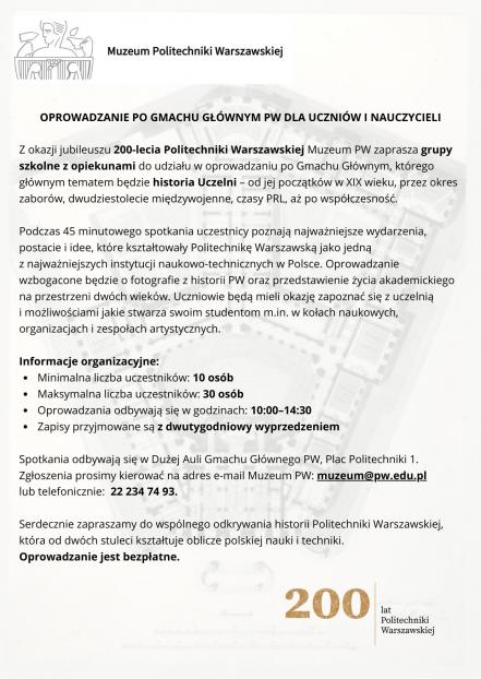 OPROWADZANIE PO GMACHU GŁOWNYM DLA UCZNIÓW I NAUCZYCIELI